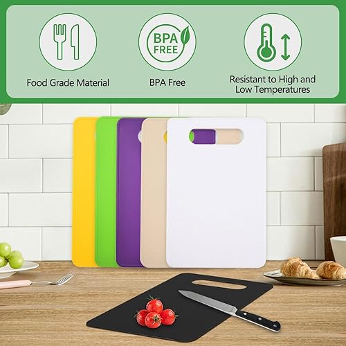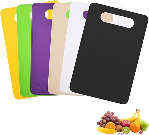 6 Pièces Planche a Decouper Plastique 29 X 19 cm Antidérapant Planche à Découper Plastique, Antibacterienne Antibactériennes Colorées Planche à Découper en Plastique pour Fruits, Viande et Légumes