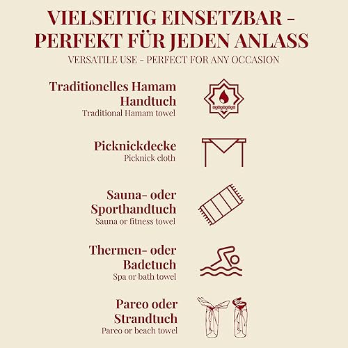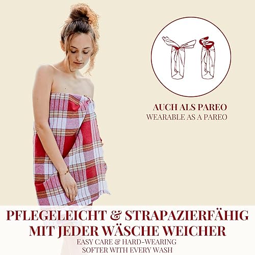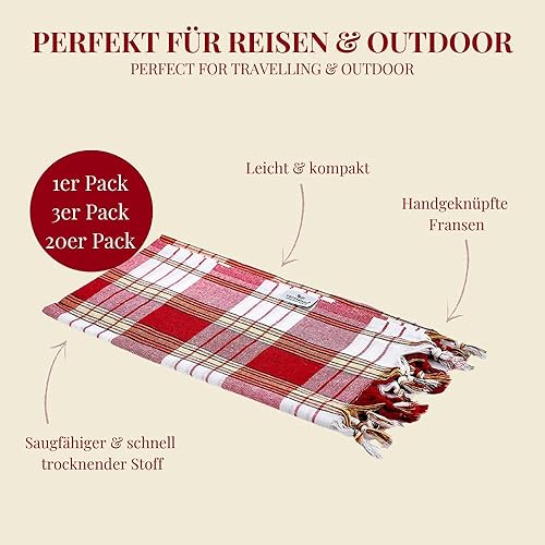 Carenesse Serviette de Hammam Classique à Carreaux Rouge, 80 x 170 cm, 100% coton, léger, peu encombrant, pestemal, serviette de sauna, serviette de bain de plage, serviette de sport, serviette turque