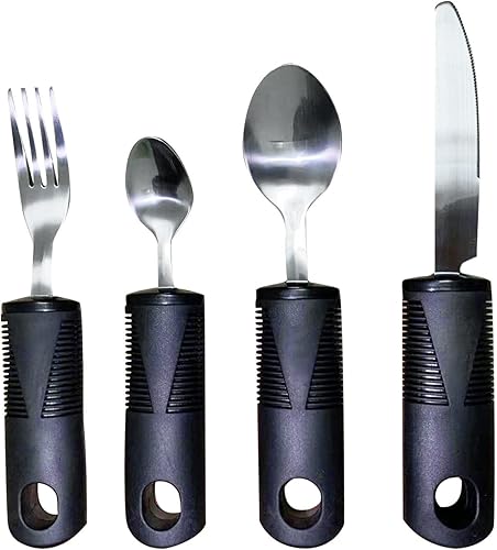 Ensemble de couverts 4 pièces avec poignées extra larges pour une prise en main facile Couverts idéaux pour les personnes âgées handicapées et les patients atteints d'arthrite de Parkinson