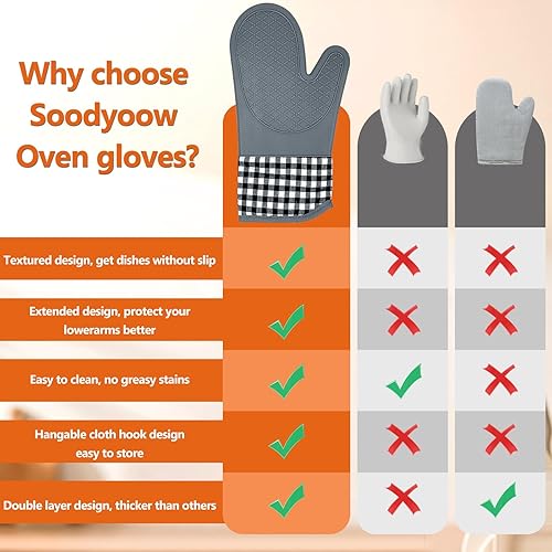 Soodyoow Maniques Cuisine, Gant Four Anti Chaleur, Gants de Cuisine Jusqu'à 230°C(30 cm)