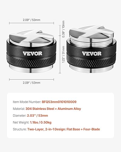 VEVOR Distributeur de café, 53 mm, outil de distribution de café expresso réglable 2 en 1, avec base en forme d'éventail, distributeur de poudre de café en acier inox 304, conception facile à démonter