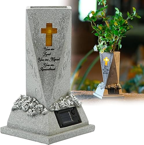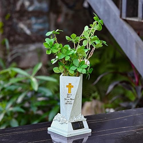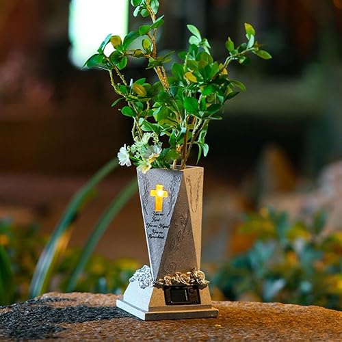 Vase funéraire pour fleurs, décoration commémorative, pots de fleurs avec lumières solaires, vase ange de prière en résine pour cour, cimetière, jardin, pelouse
