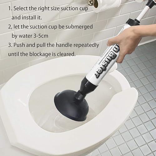 cococity Puissant Déboucheur de Toilettes avec 2 Ventouses, Haute Pression en ABS pour Salle de Bain, Toilettes, Baignoire, Douche, Lavabo