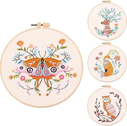 Mounteps Kit de broderie de croix DIY pour débutants - motif de cerf papillon au renard et au hibou à la main (Papillon)