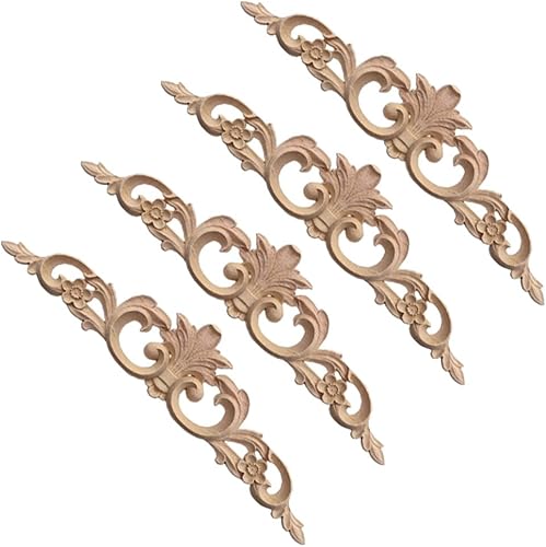 URFEDA 4 Pièces Sculpture sur Bois Fleur Décalque, Ornements en Bois Sculpté pour Meubles Moulure Decorative Bois Sculpté Vintage Non Peints Bois Sculpté Décalque Pour Meubles, Mur, Armoire, Porte