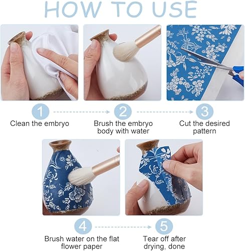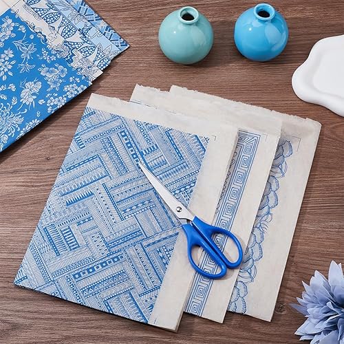 WEBEEDY 8 Style de Papier de Transfert pour l'Argile Céramique Fleur Porcelaine Glaçage Sous-Glacis pour Poterie Art Autocollants DIY,Bleu et Blanc Décalcomanies Céramiques,37x52cm