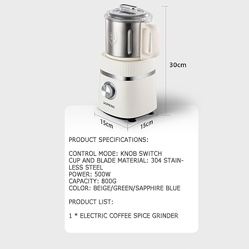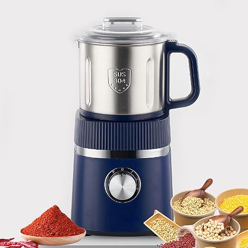 Moulin à Grains électrique, Moulin à café 500 W avec Couvercle Amovible, 26 000 TR/Min, broyage Sec/Humide à Double Usage, Grande capacité 800 g, Moulin à épices à 4 Vitesses pour Grains de café Blue