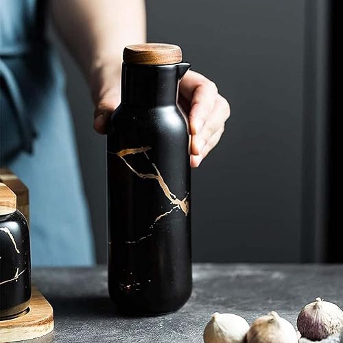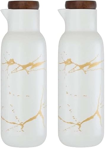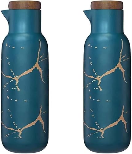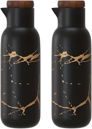VollfitYYu Lot de 2 distributeurs d'huile en céramique aspect marbré - 380 ml - Distributeur d'huile d'olive - Pour cuisine, restaurant, barbecue - Vert