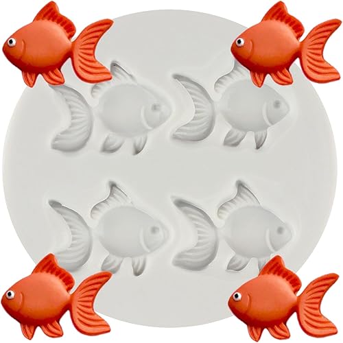 MINFEIDMS Moule en silicone en forme de petit poisson rouge pour fondant, chocolat, décoration de gâteau, pâte à sucre, pâte à sucre, argile polymère
