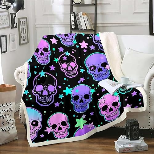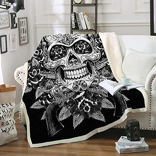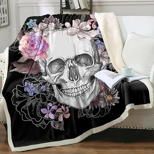 ZZTBQ Tête de Mort Couverture en Polaire pour Adolescent, Gothique Crâne Sherpa Couverture Plaid Polaire 1 Personne 130 x 150 cm Noir Skull Couverture Polaire Double Face Ultra Douce en Flanelle