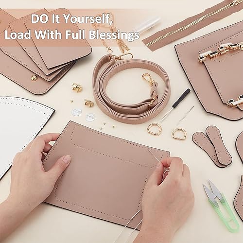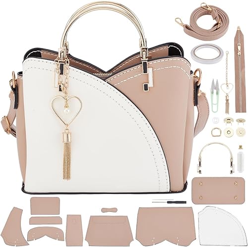 WEBEEDY Kit de Fabrication de Sac en Cuir PU DIY Sac Bucket Tricotage Crochet Set avec Sangles de Sac Clasps pour Adulte,Kit d'Artisanat en Cuir fait à la main pour les Femmes