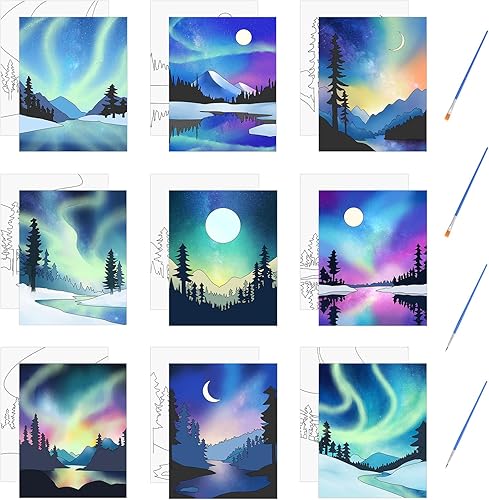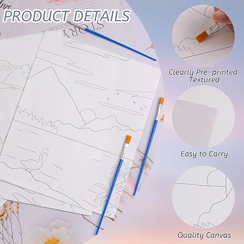 HICOHAND Lot de 9 toiles pré-imprimées sur le thème du coucher de soleil sur le thème du bord de mer pour peindre des cadeaux de fête pour bricolage, salle de classe, fournitures de fête, 20 x 25 cm