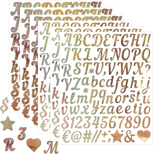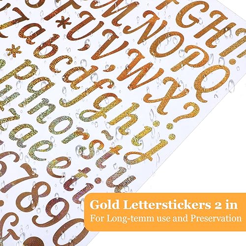 HJZHII Lot de 6 feuilles d'autocollants lettres et chiffres dorés et brillants pour boîte aux lettres, grands autocollants résistants aux intempéries pour étiquettes, scrapbooking et décoration