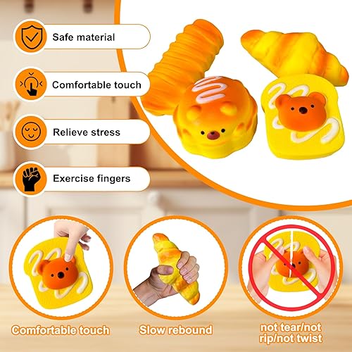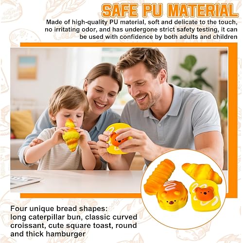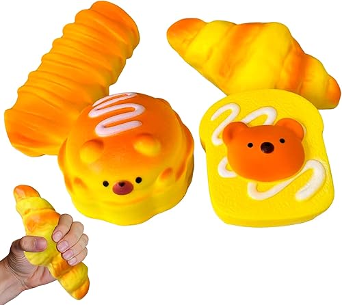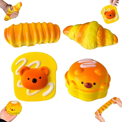 Kleemeiero 4 Pièces Ensemble de Squishies, Jouet à Presser Squishy Taba Squishy Jouet Anti Stress Squishies à Croissance, Chenille, Griller, Hamburger pour Filles Enfants Et Adultes
