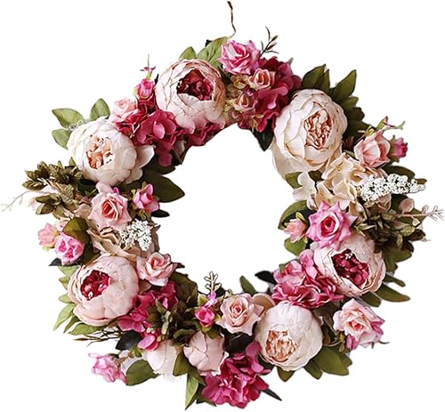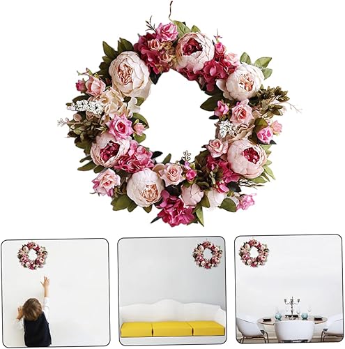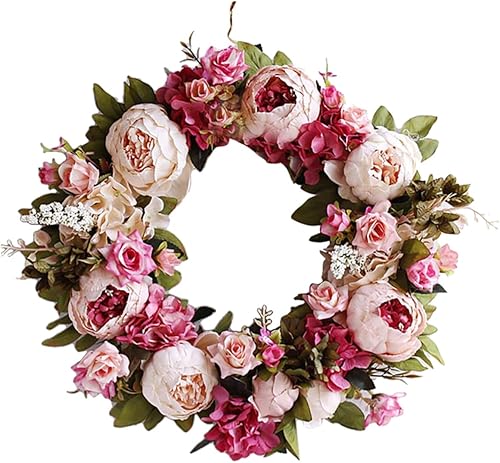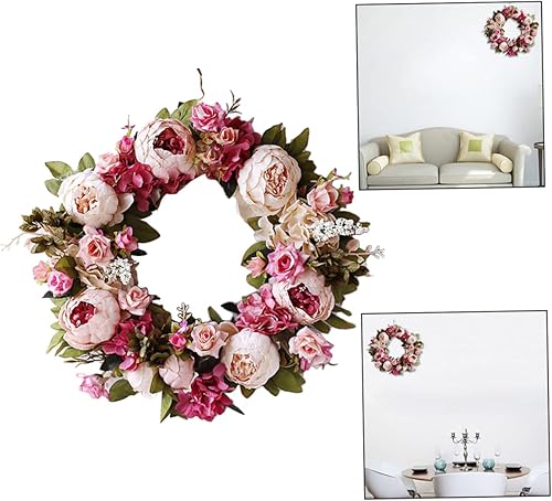 Couronnes de Porte, Fleurs artificielles Couronne de Pivoine, Couronne de Porte d'entrée, Couronne de Porte Florale pour décoration, Couronne Florale