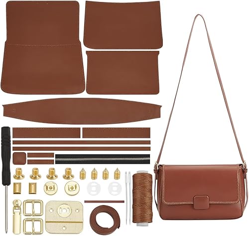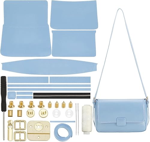 WADORN Kit de Fabrication de Sac à Bandoulière en Cuir PU, Sac à Bandoulière Fait Main à Faire Soi Même Ensemble de Matériaux de Couture Sac à Main pour Femme Fournitures D'Artisanat Bleu Clair
