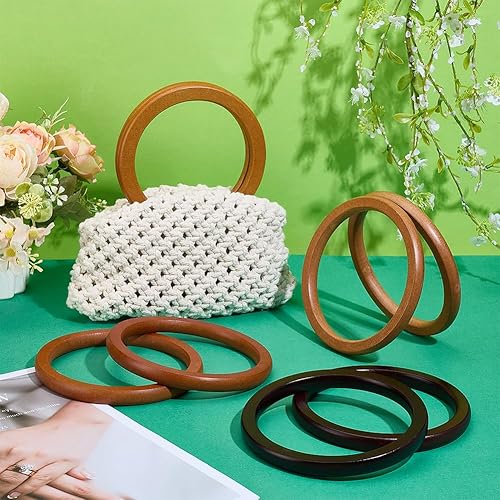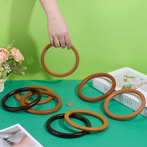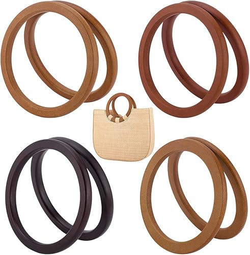 PH PandaHall 8pcs Poignées de Sac Rondes Plates 4 couleurs Poignées de Sac à Main en Bois 13.6 14cm Anneau Décoratif Poignée de Sac à Main pour Bricolage Été Portefeuille Tissés Totes Fabrication