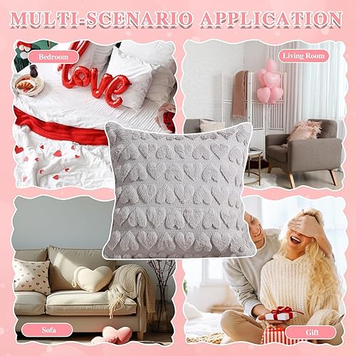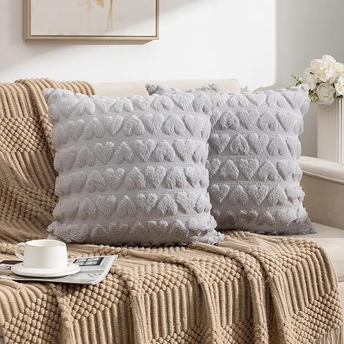 Lot de 2 housses de coussin en peluche en forme de cœur - 45 x 45 cm - Décoration romantique et moderne - Pour chambre à coucher, salon - Rose - 45 x 45 cm