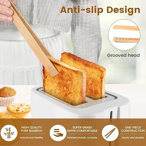 HGNUT 2 PCS Pain En Bambou Naturel Et Pinces De Cuisson - Pinces En Bois Résistantes À La Chaleur Utilisées Pour Cuire Du Pain, Griller, Cuisiner Et Servir Des Plats