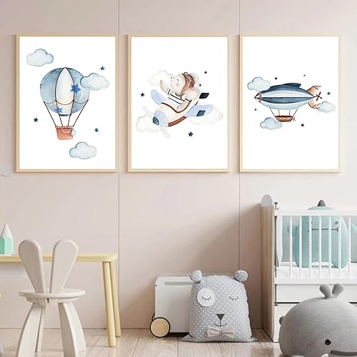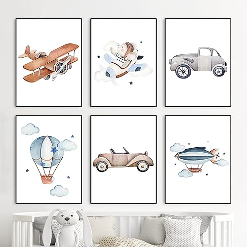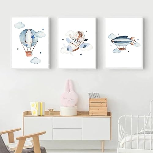 CULASIGN Lot de 3 posters pour chambre d'enfant - Format A4 - Sans cadre photo - Tableau mural décoratif pour fille garçon - Motifs : voitures, avions, montgolfières (DEF, 30 x 40 cm)