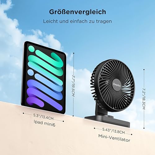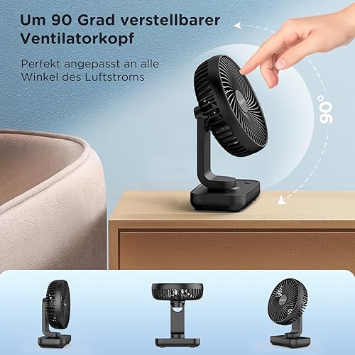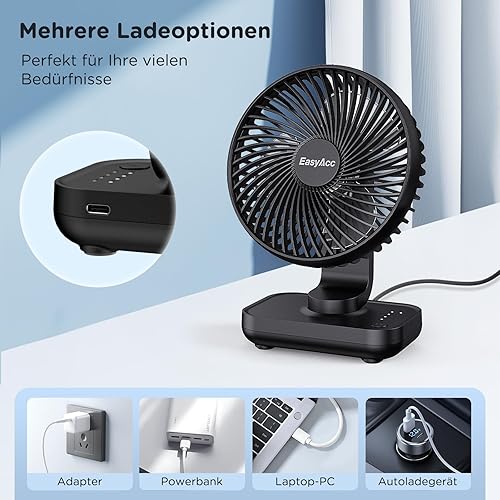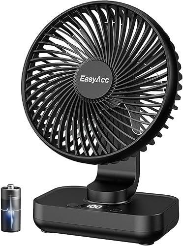 EasyAcc Ventilateur de table, batterie rechargeable 4000 mAh, petit ventilateur USB, portable, rechargeable, 4 vitesses, pour camping, bureau, bibliothèque et maison – Noir