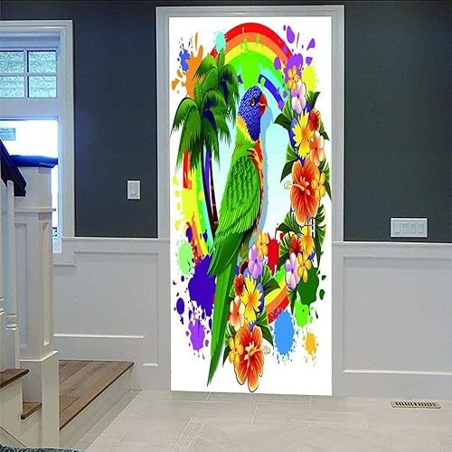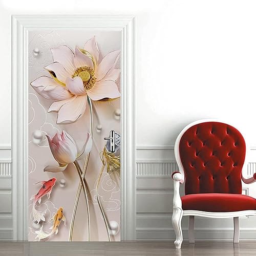 3D Stickers Porte Bijoux Lotus Rose Poisson Rouge 77 X 200 Cm Auto-Adhésif Mural Décoration De La Maison Sticker Mural Art Autocollant Chambre Salon Affiche Amovible - Photos De Porte - Peintures Mur