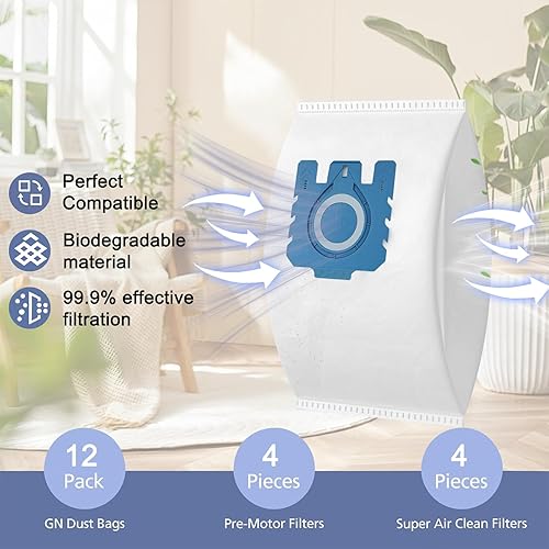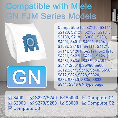 Lot De 6 Sacs Aspirateur Compatibles Avec Miele Gn, AdaptéS à Sac Aspirateur Complete C3, C2,Classic C1,S2 S4 S5 S6 S8, 3d Efficiency Bags + 2 Filtres Moteur + 2 Airclean + 1 Clean Brush