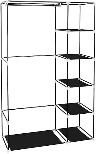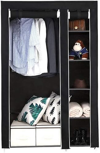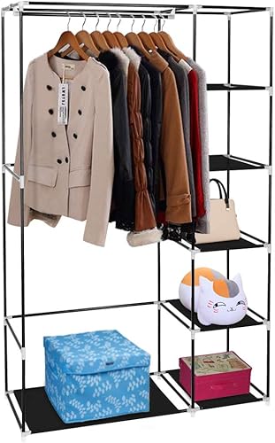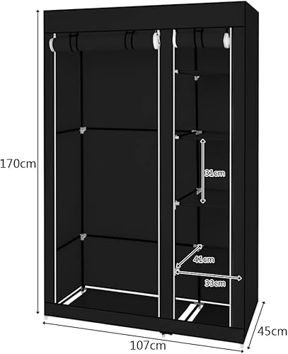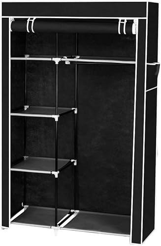 TactFire Armoire de Rangement en Tissu, Penderie avec Housse, Armoire Chambre Portable, Armoire à Vêtements avec 5 Couches 6 Compartiments, 110 x 45 x 175 cm (Noir, 110x45x175cm)