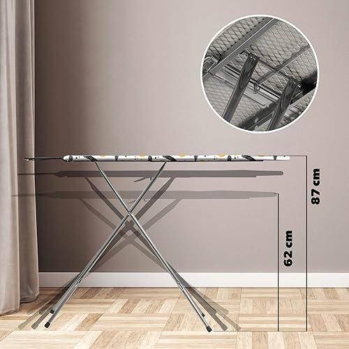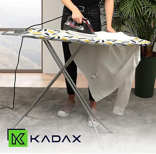 KADAX Planche à Repasser, Table à Repasser Vapeur avec Pieds antidérapants, Planche à Repasser réglable en Hauteur avec revêtement Amovible, Table à Repasser (105 x 30 cm, Blanc/Argent)