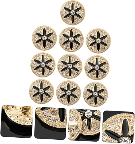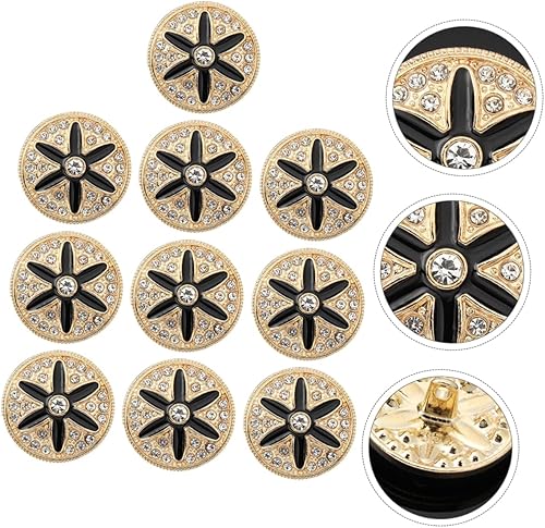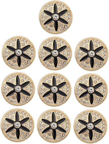 VILLCASE Lot de 10 Boutons Ronds en Métal de 18 Mm pour Manteau en Laine Artisanat Raffiné Strass Brillants Boutonnières Lisses Accessoires de Vêtements Élégants Noir/18 Mm