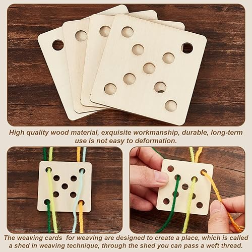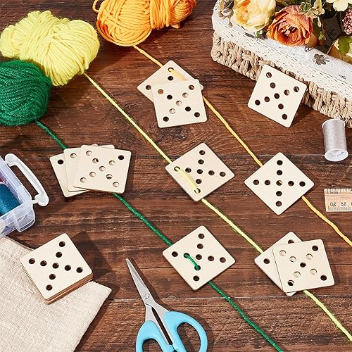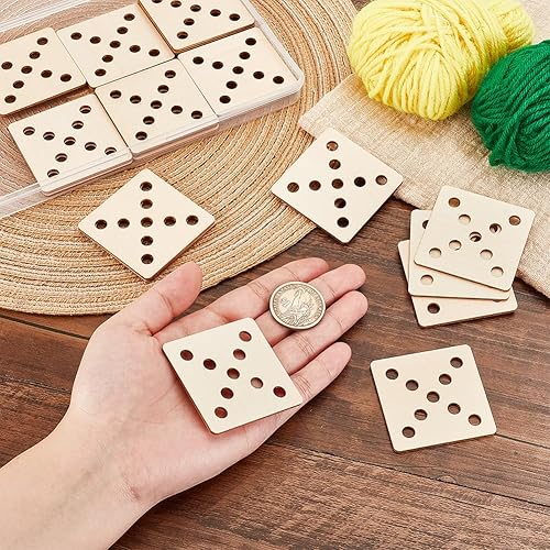 AHANDMAKER Lot de 24 cartes de tissage carrées de 5,9 cm, 9 trous en bois, cartes de tissage pour métier à tisser à tricoter ou accessoires de métier à tisser, mocassin
