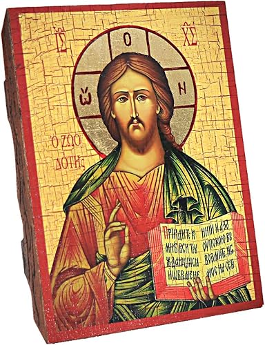 NKlaus Jésus-Christ, Icône chrétienne en bois massif scellée 16x12, fait main 37010