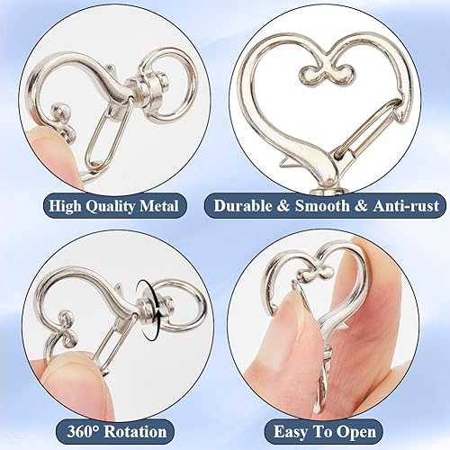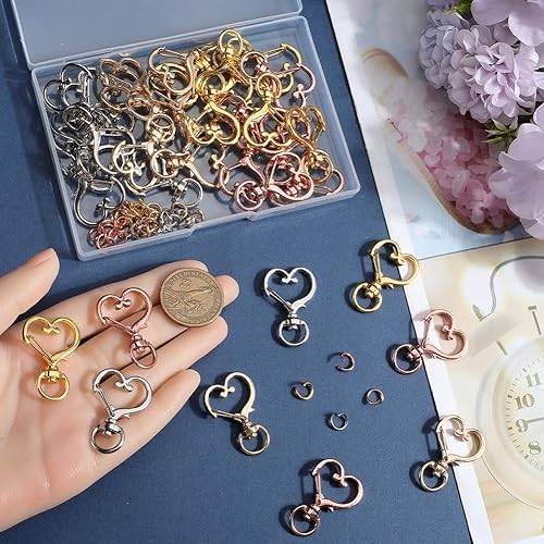 SOFPLATE 1 boîte de 40 mousquetons Pivotants Dorés en Alliage en Vrac Mousqueton Rotatif en Forme de Cœur Porte Clés Crochets Boucle de Suspension pour Sac à Main Sacs Porte Clés Accessoires de Fabric