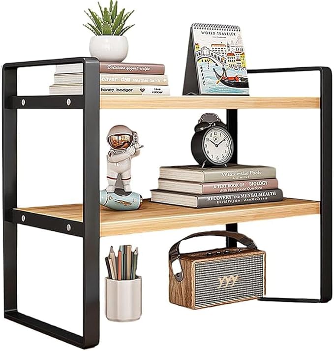 Bibliothèque en bois, organisateur de livres, organisateur de fichiers, organisateur de bureau, étagère de rangement de bureau, étagère de rangement de bureau, étagère à livres de bureau (noir +
