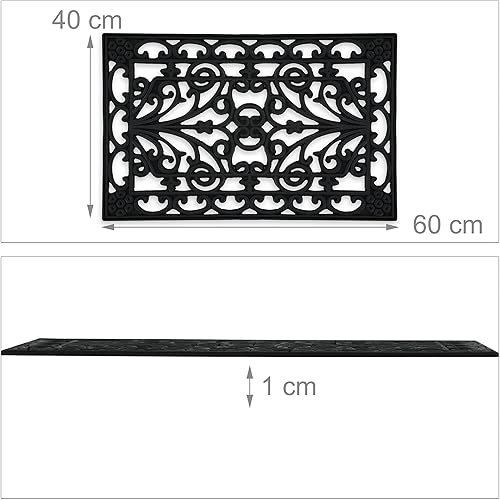 relaxdays Paillasson Caoutchouc, 40x60, antidérapant, résistant, caillebotis extérieur, Tapis d’entrée, Ornements, Noir