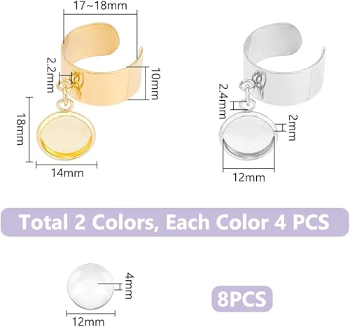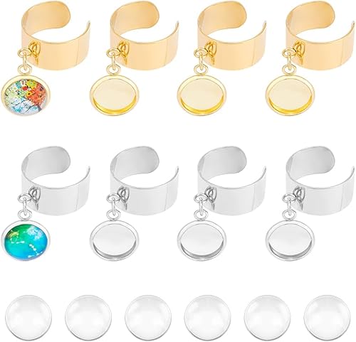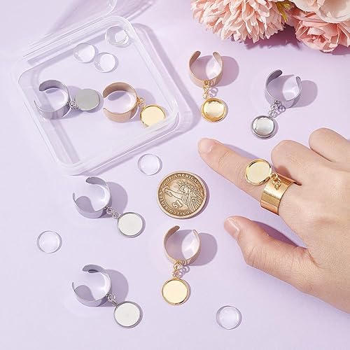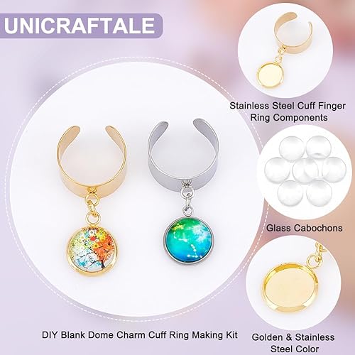 UNICRAFTALE Bague Breloques Acier Inoxydable Pendentif Cabochons Rond Anneaux Réglables Bague pour Femme Manchette Ouverte avec cabochons pour Bijoux