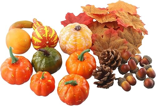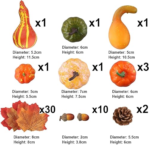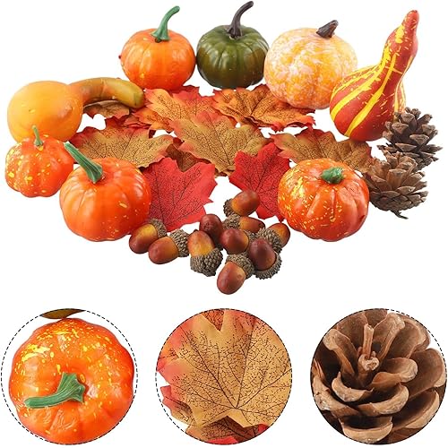Lot de 50 citrouilles artificielles d'automne pour Thanksgiving et Halloween, récolte de fruits et feuilles d'érable