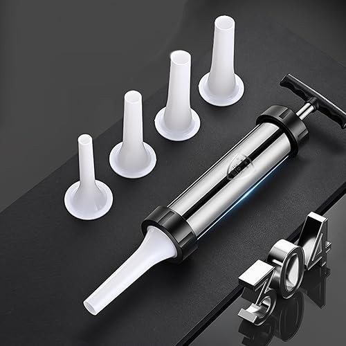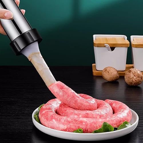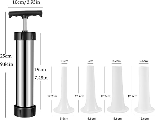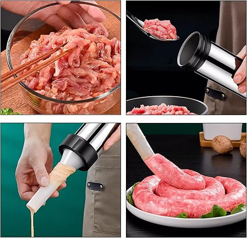 Xinlie Poussoir à Saucisse Manuel de Qualité Alimentaire Outil Manuel Remplissage de Saucisses Remplissage de Saucisse en Acier Inoxydable Poussoir à Saucisses avec 4 Entonnoir,pour Saucisses Maison