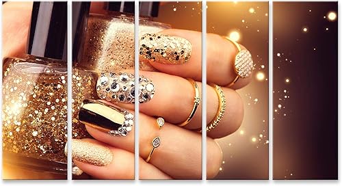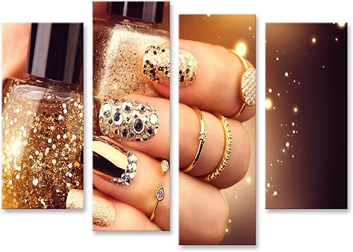 islandburner Tableau sur Toile Accessoires de Vernis à Ongles manucure doré Cadre Affiche Poster Murale Tableaux