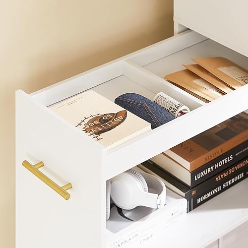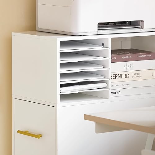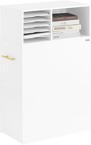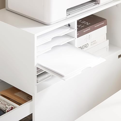 SoBuy Caisson de Bureau à roulettes, Support Imprimante Roulant, Organiseur Bureau, Meuble de Rangement Bureau, Caisson de Rangement avec Compartiments, 60x33x100cm, Blanc, ASK12-W