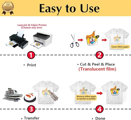 TransOurDream Tru-T TOD-03-20 Lot de 20 feuilles de papier transfert thermocollant A4 pour imprimante à jet d'encre et laser, vinyle de transfert thermique HTV imprimable pour tissus blancs et légers,