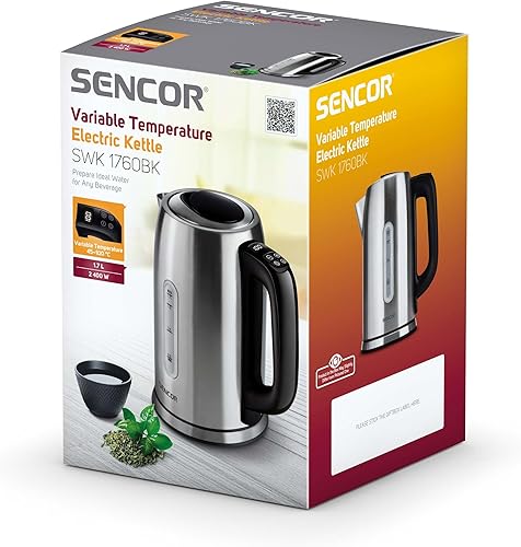 Bouilloire Électrique à Température Variable, 1.7 L Capacité, 2400W, Noir