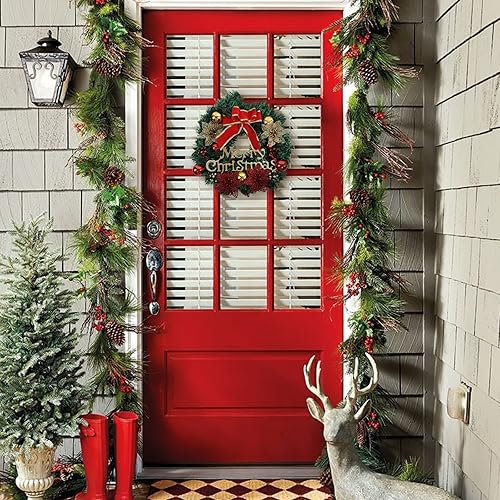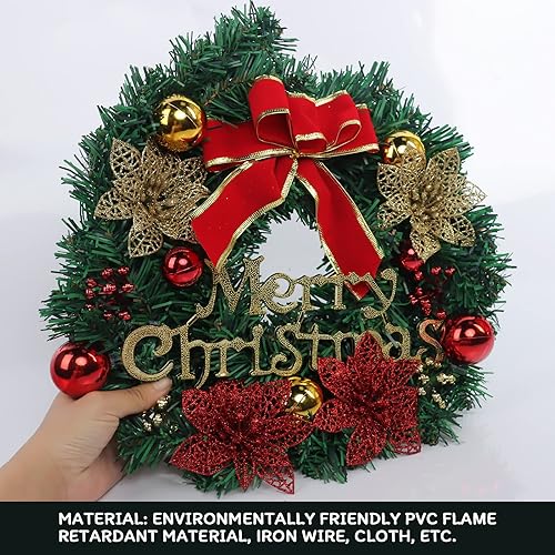 Gxhong 30cm Couronne de décoration de Noël,Couronne de noël,Guirlande de Noël Artificielle,Couronne de Porte de Noël, pour Porte, Mur ou Fenêtre,Décoration de Noel