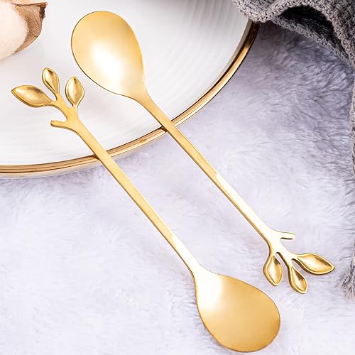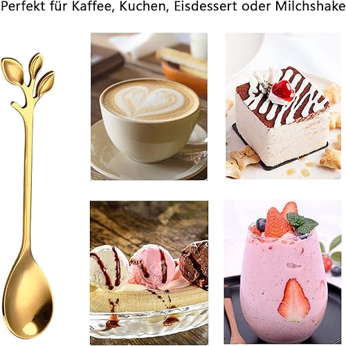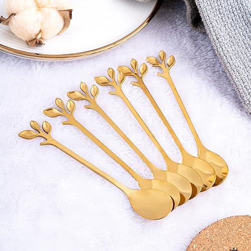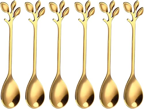 Lot de 6 cuillères à café en acier inoxydable - Cuillères à café - Cuillères à glace - Cuillères à dessert - Petites cuillères brillantes et polies brillantes - Passe au lave-vaisselle (doré)