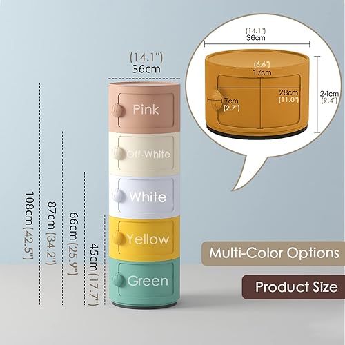 TPARIS Adorable Table De Chevet Ronde|Décor D'intérieur Moderne Table De Nuit Créative Table d'Appoint|Multifonctionnel Mode Petits Espaces Meubles,5 Niveaux-108cm(42,5in),Multicolore