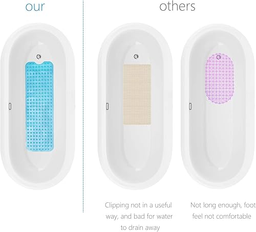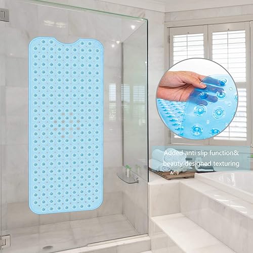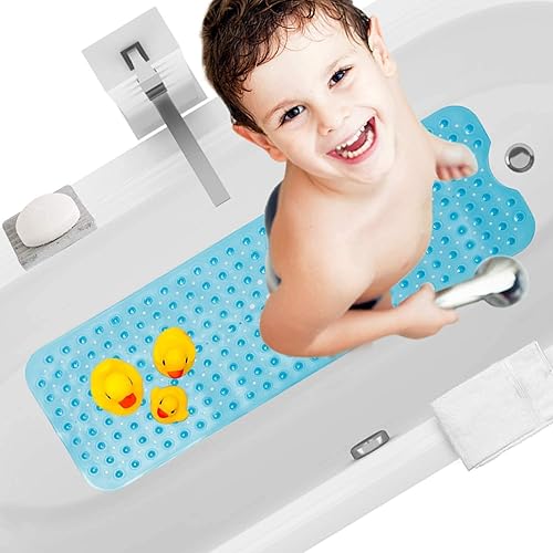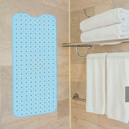 HBselect Tapis de Baignoire de Sécurité Antidérapant Anti moisissures Grain Le du Cuir,Tapis de Douche pour Enfants Anti Glisse,100 × 40 CM,Bleu