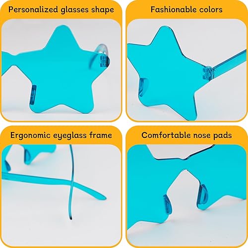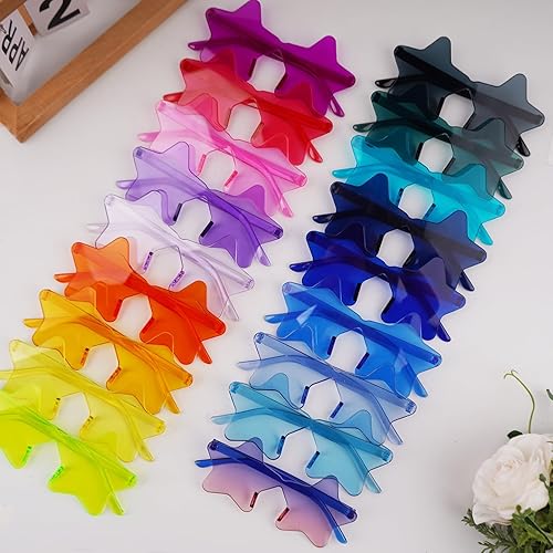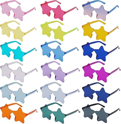 Vookkp 18 Paires Lunettes de Fête Étoile Sans Cadre, Hippie Lunettes de Soleil Étoile Transparentes Couleur Bonbon Multicolores pour FêTe D'Anniversaire, Carnaval, Noël