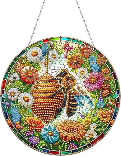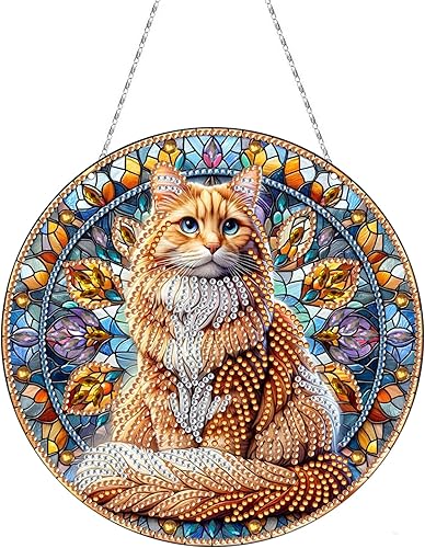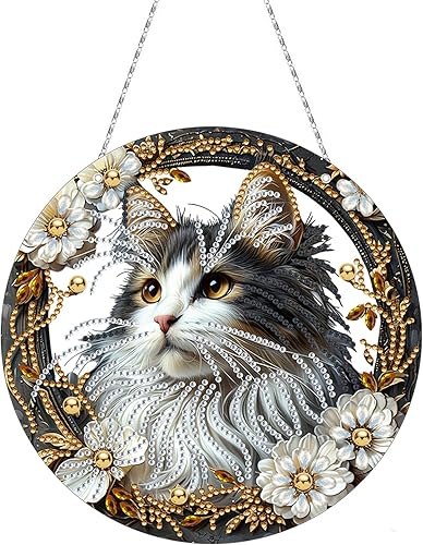 CXINLky DIY Diamond Painting Pendentif avec chaîne, peinture diamant 5D, couronne de porte, kit de décoration murale pour fenêtre, mur, entrée, jardin, décoration 13 chats