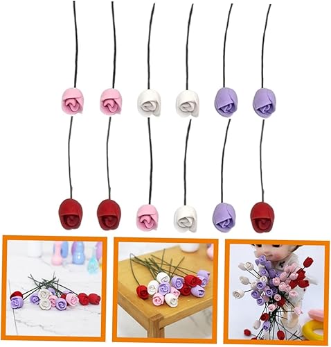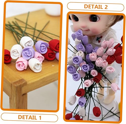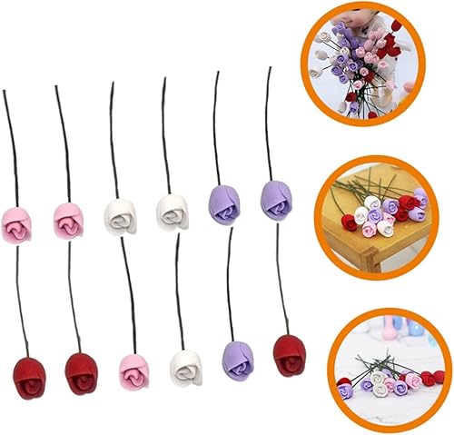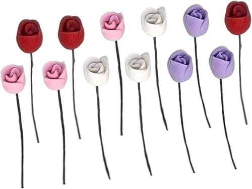 ULTECHNOVO 1 Jeu Mini Bouquet De Tulipes pour Maison De Poupée Minuscules Fleurs Figurines De Tulipes en Fleurs d'argile Maquette Miniature Jardin Miniature Décoration Mini Maison 12 Pièces