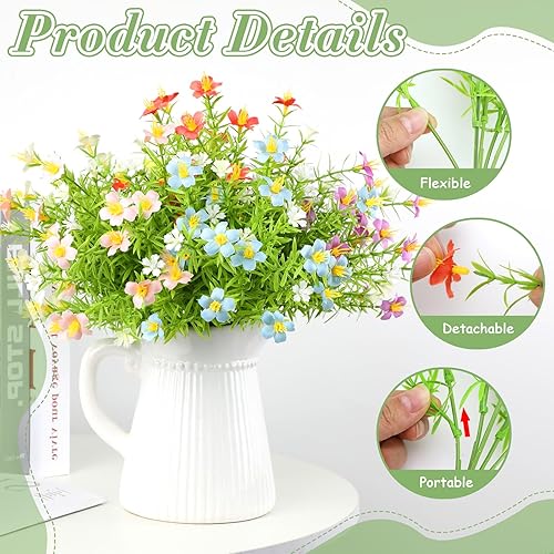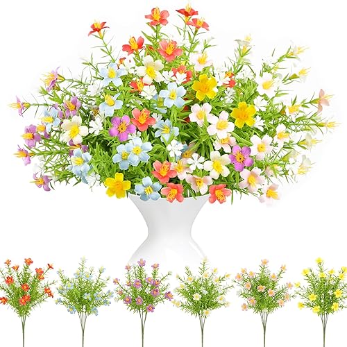 GMMG Fleurs Artificielles Deco, 12Pcs Plante Artificielle, Résistant Aux UV Fausse Fleur, Bouquet Fleur Artificielle Exterieur pour Maison Jardin Balcon Porche